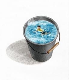Boy in a bucket of water