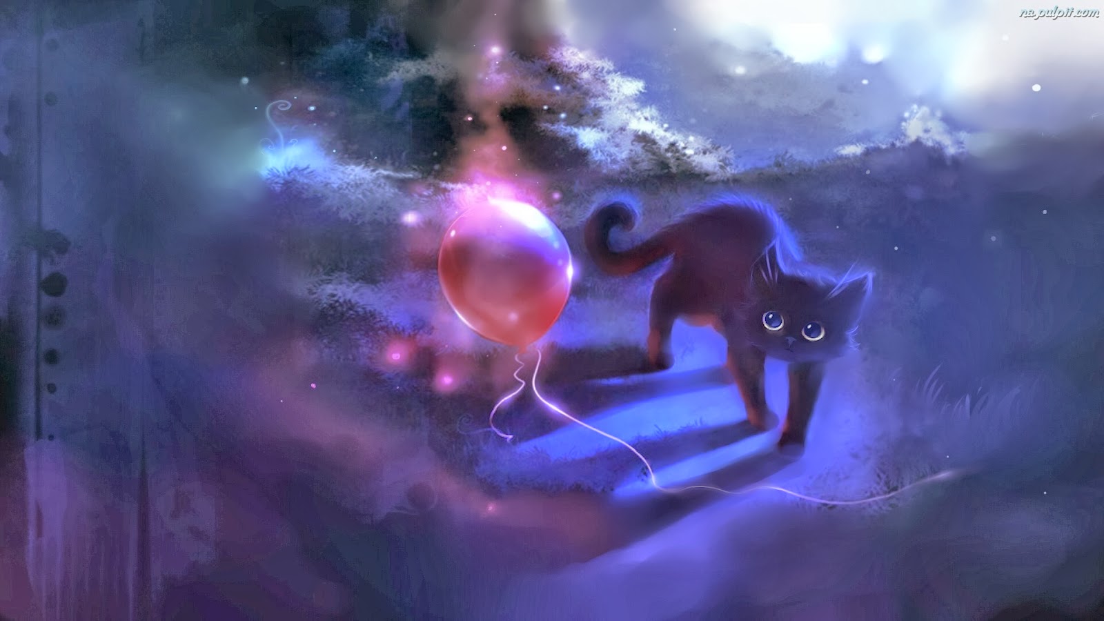 Wallpaper created based on an original found on Deviantart: Apofiss: Queda uno rojo, 2010. “the cat can’t never really grab or have it as he blows it to pieces no matter what”.